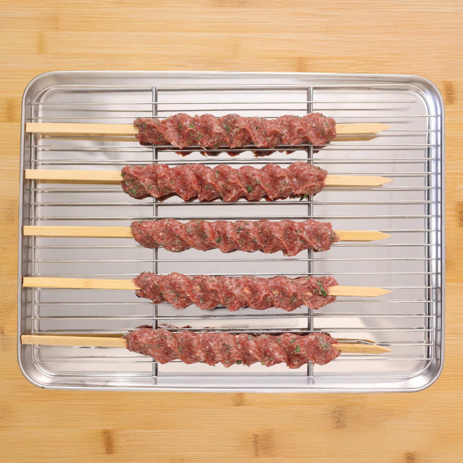 Fresh minced lamb meat mixed with parsley and onions, perfectly seasoned for juicy, flavorful skewered kafta.
