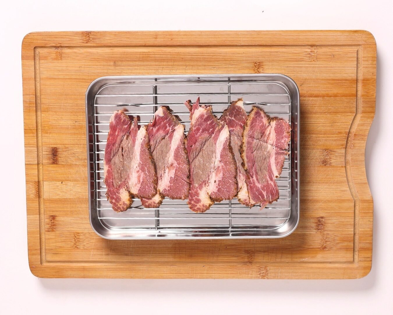 Premium pastrami crafted from selected Angus brisket, carefully brined, seasoned with a rich blend of spices, slow-cooked, and delicately smoked to perfection.